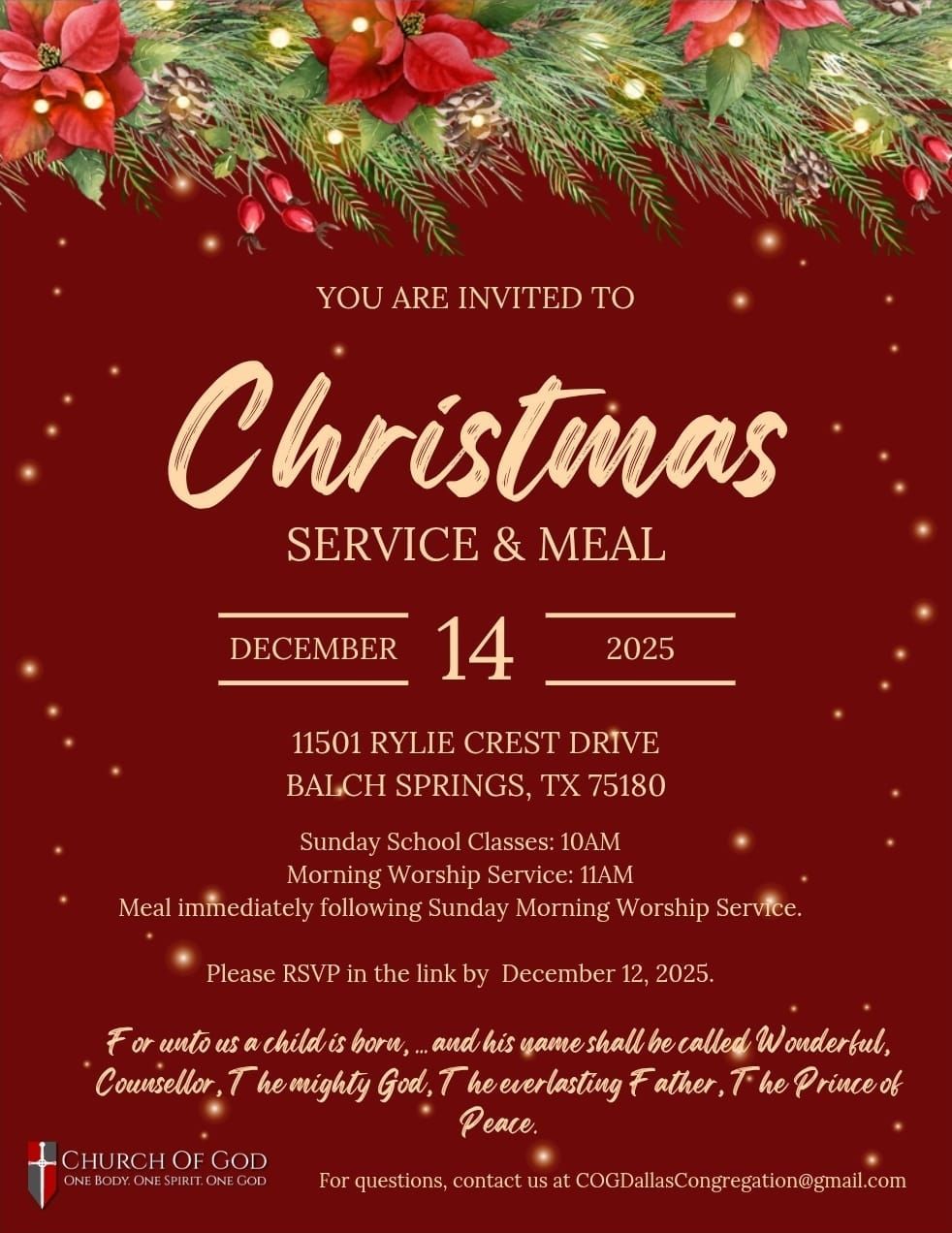 We welcome you to join us next Sunday, December 14th, for our annual Christmas service and meal! See the flyer for more details and RSVP via the Linktree link in our bio. Hope to see you there!